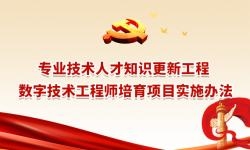 为实施好专业技术人才知识更新工程数字技术工程师培育项目(以下简称项目),根据《专业技术人才知识更新工程实施方案》和《人力资源社会保障部办公厅关于加强新职业培训工作的通知》...